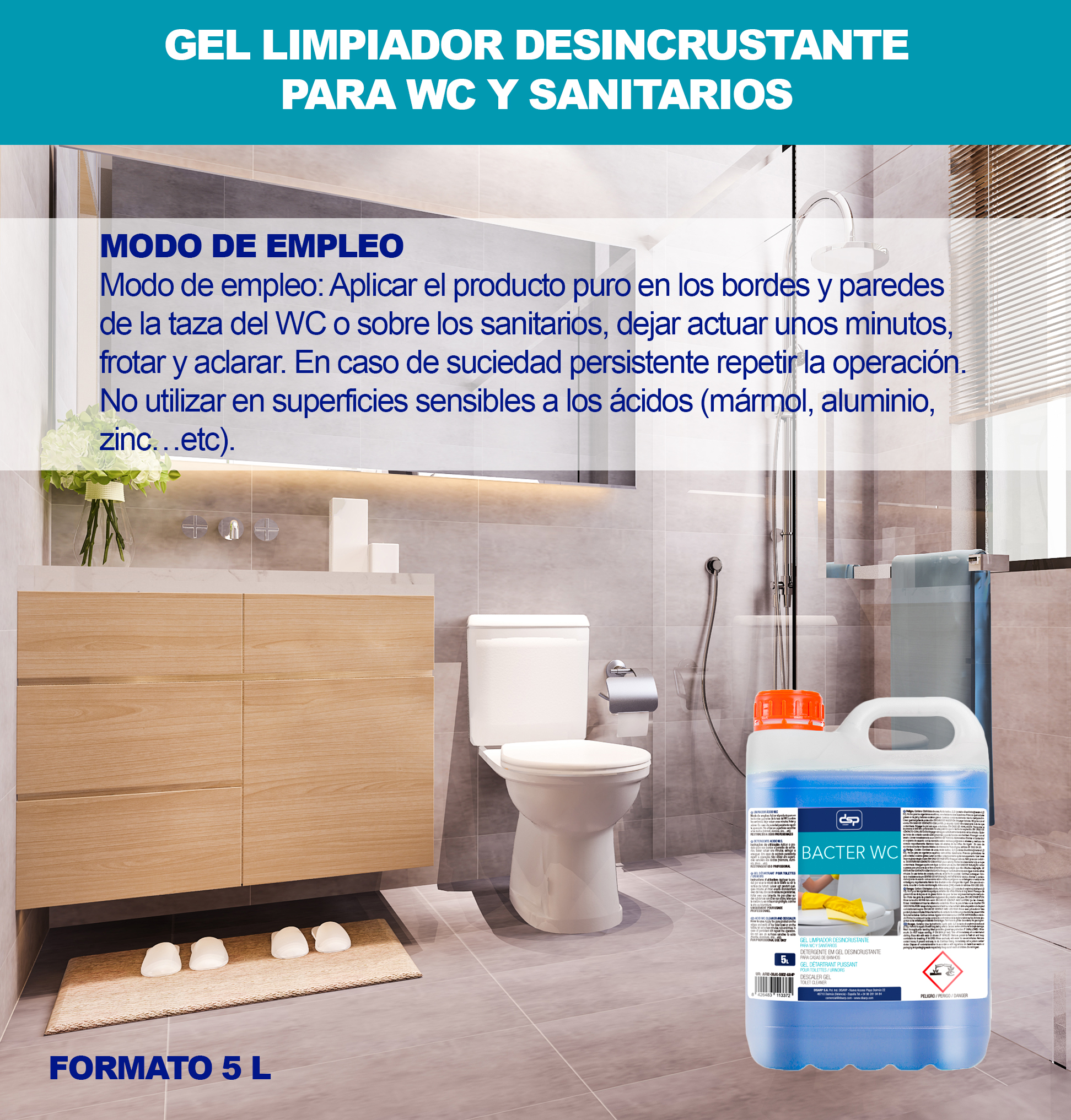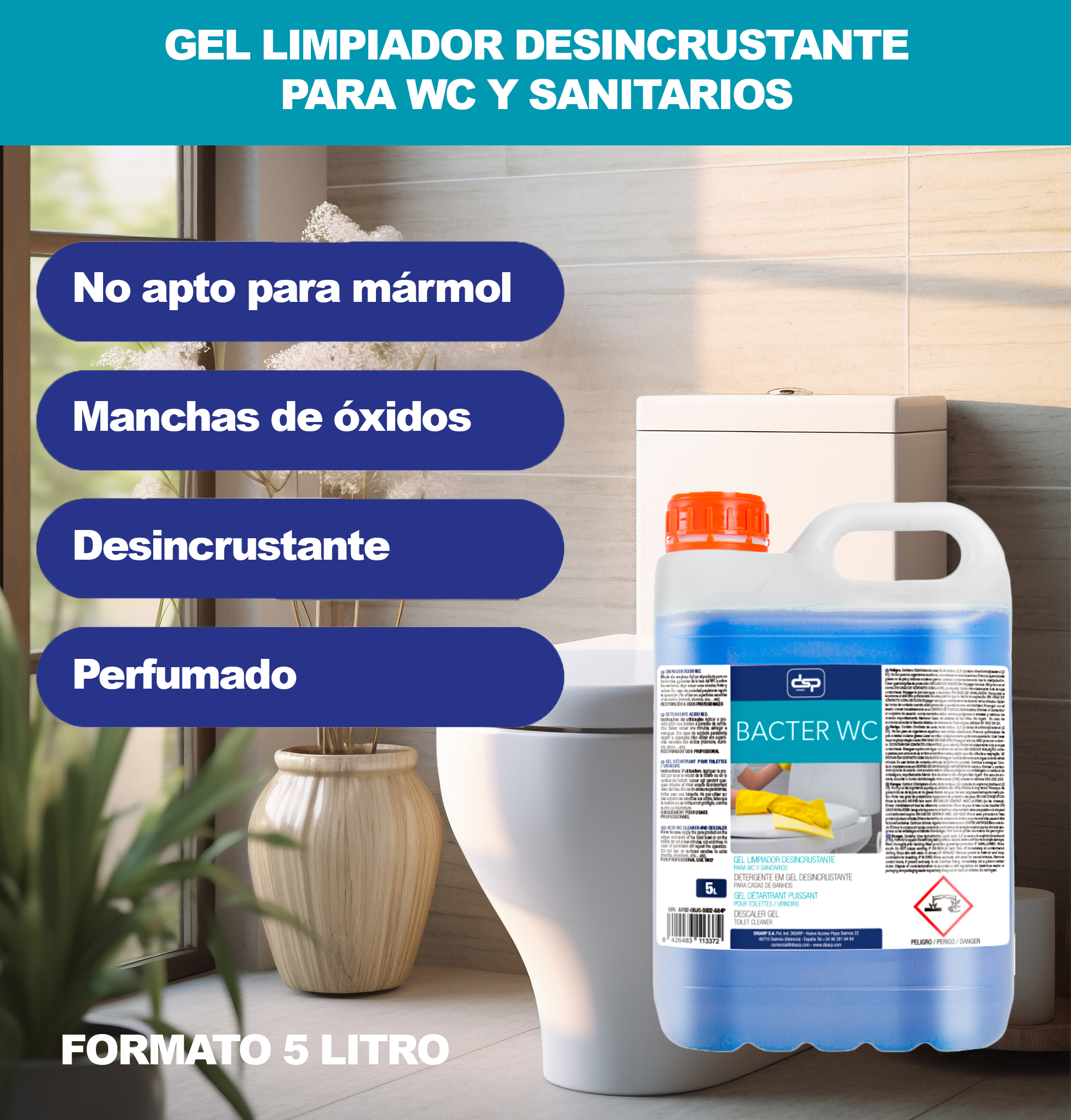 IDEAL PARA BAÑOS PROFESIONALES: Indicado para W.C., urinarios y sanitarios en hostelería, colectividades y uso intensivo.