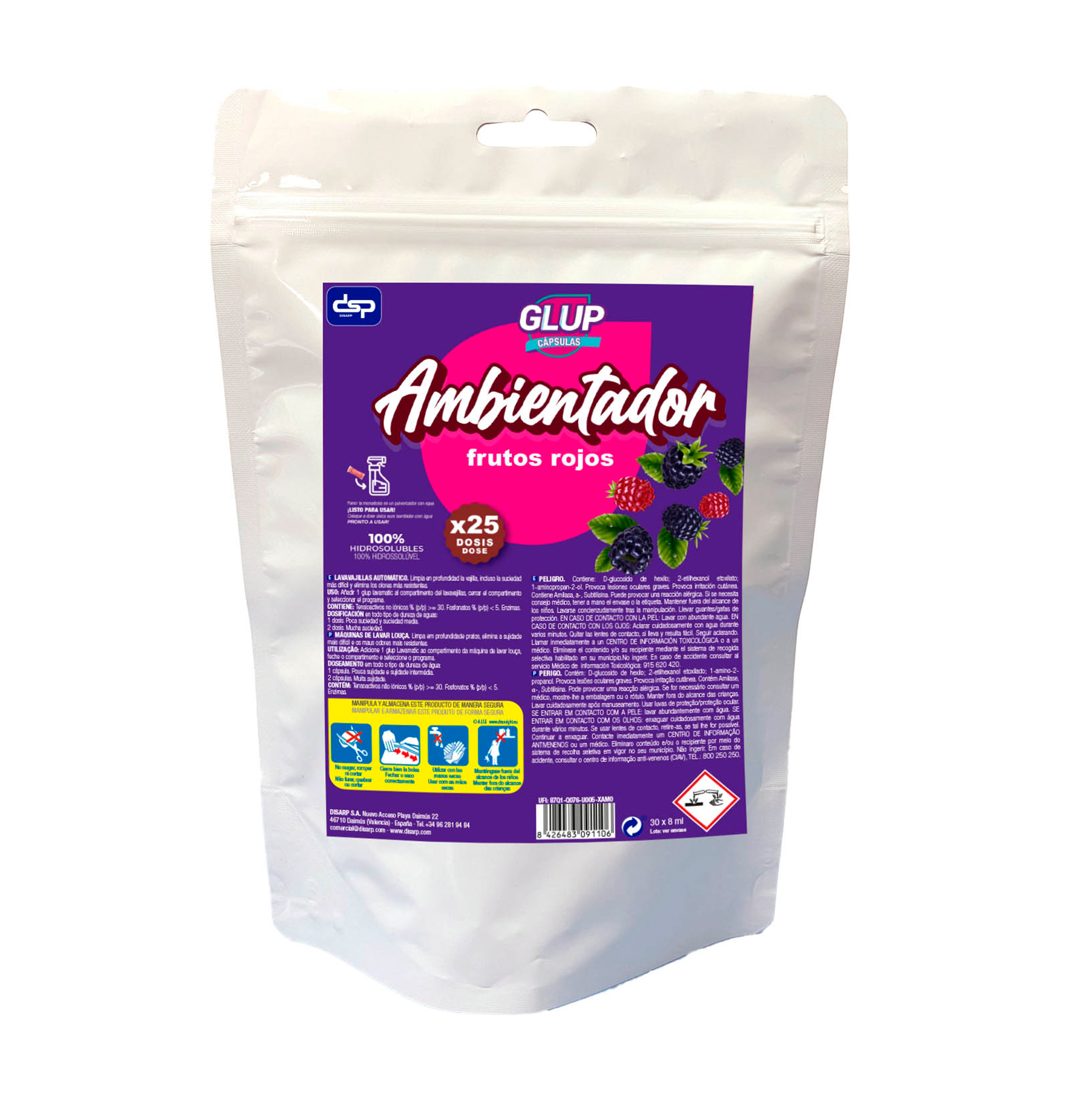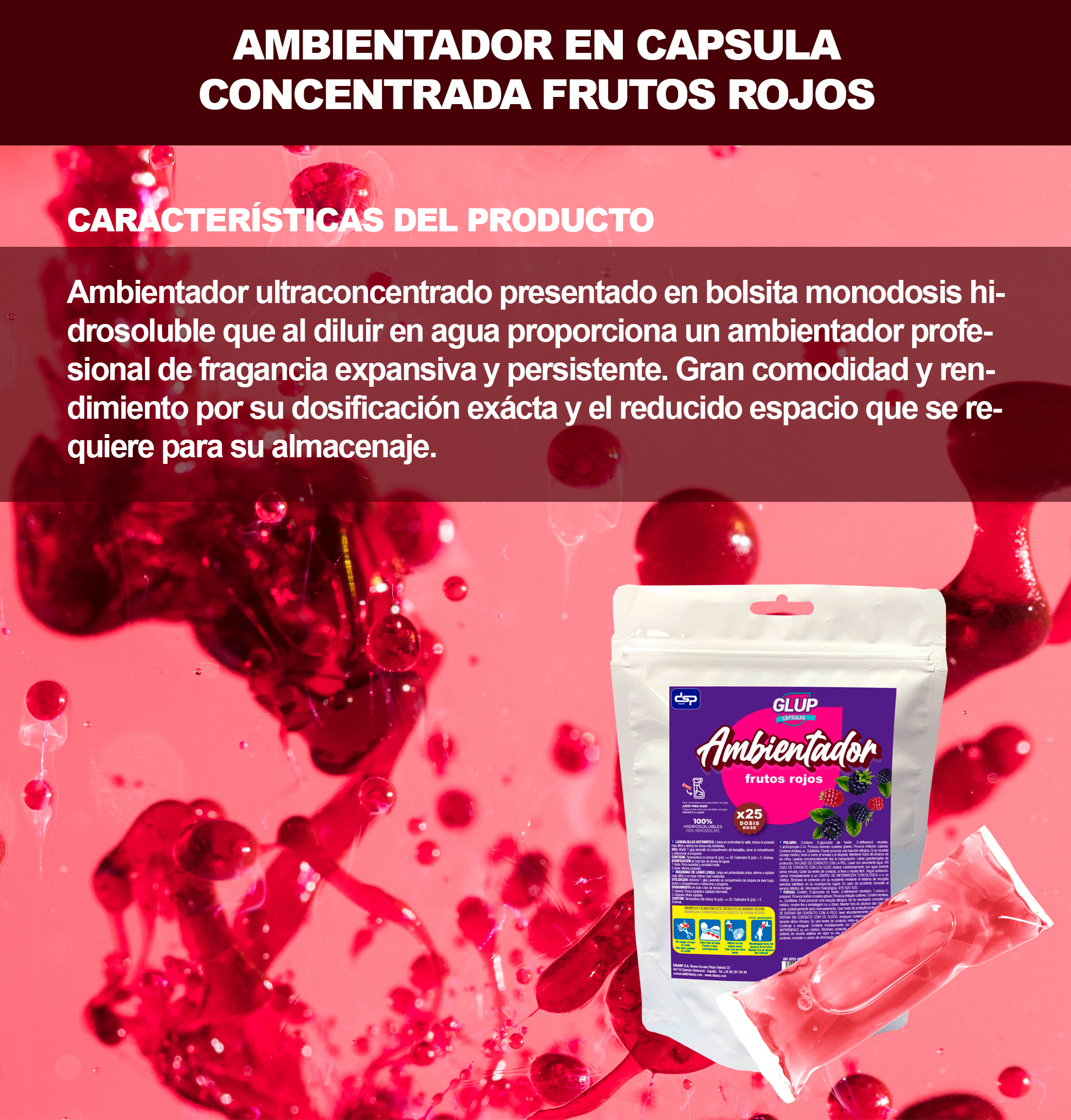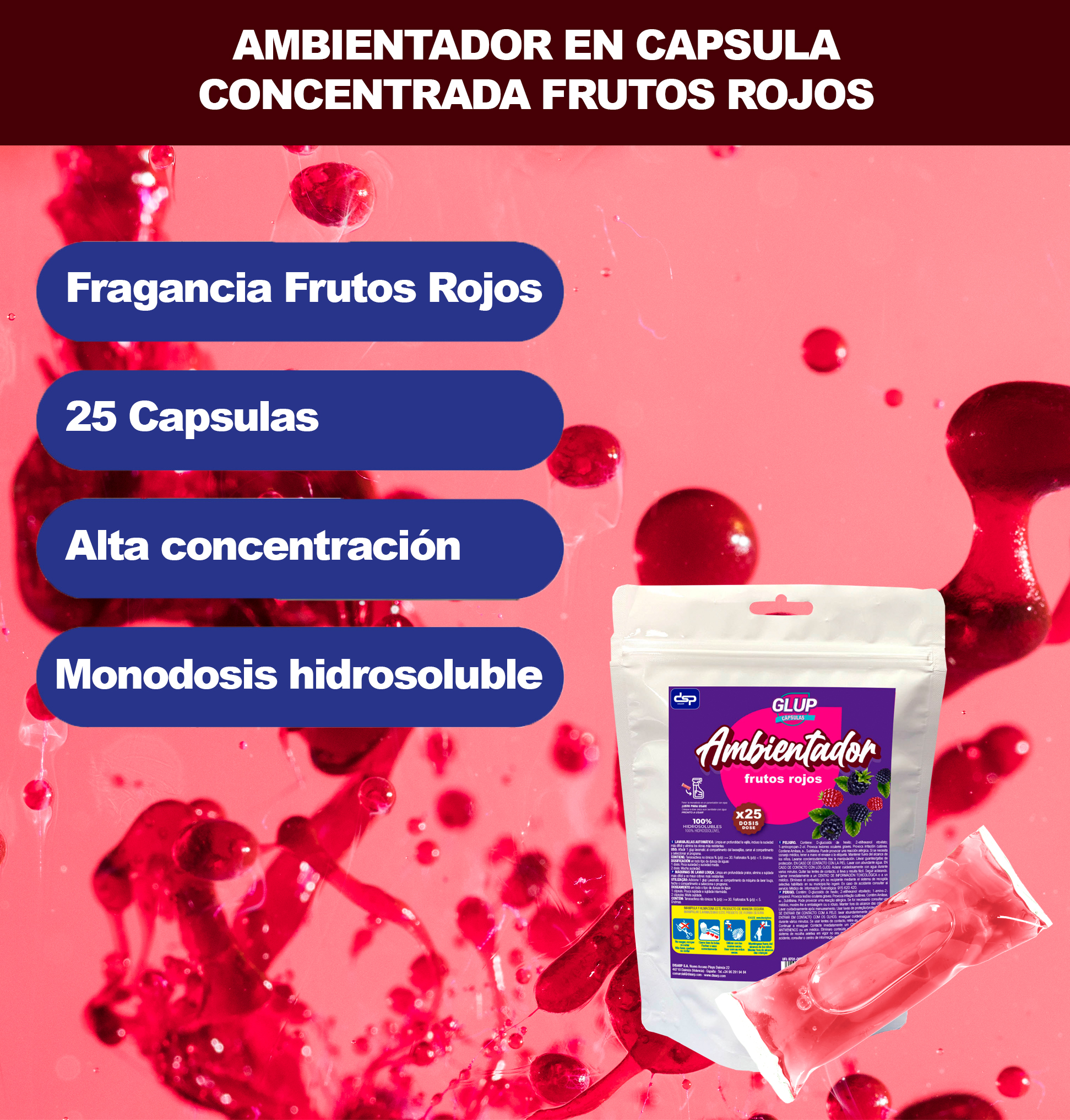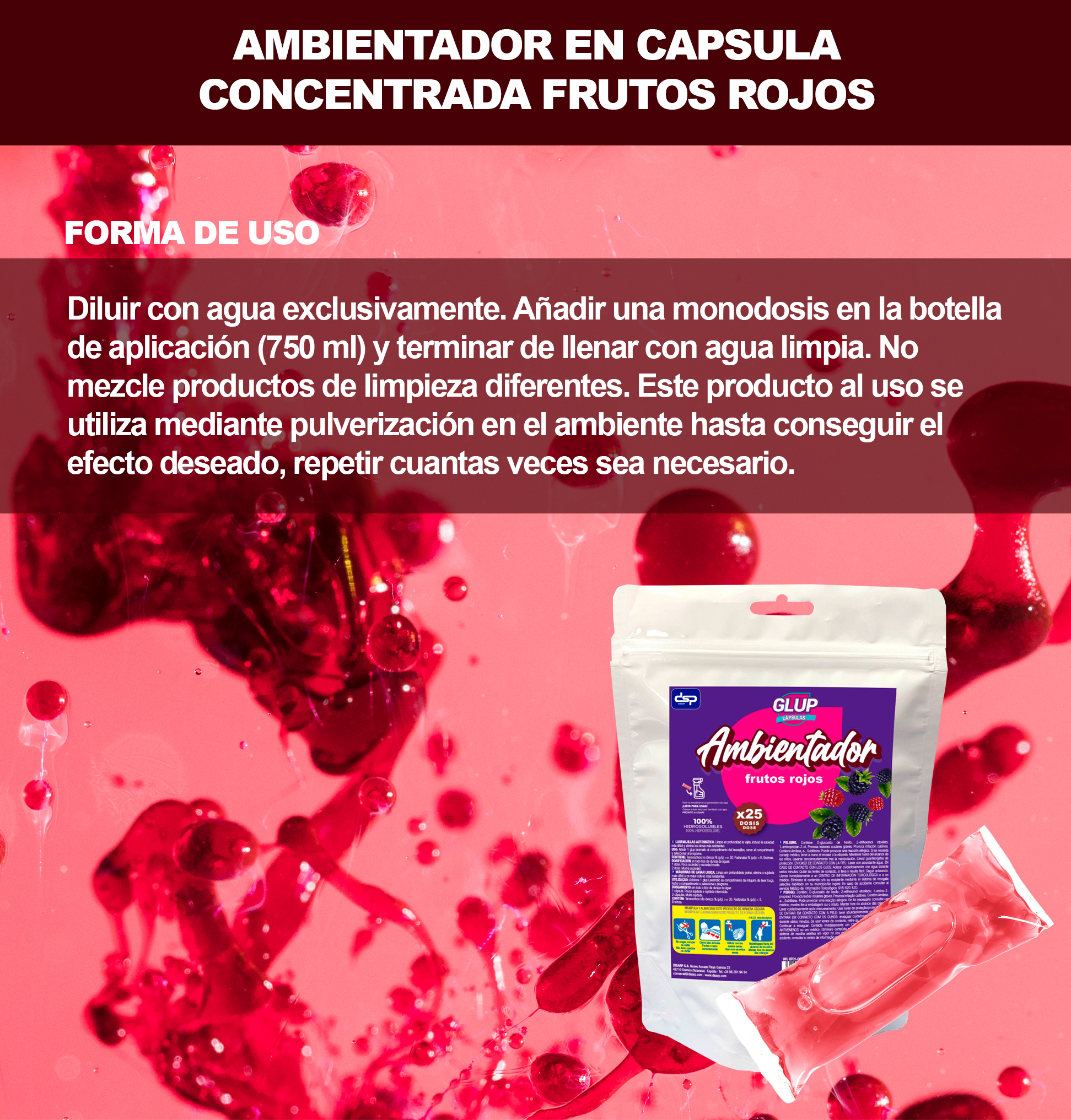 GLUP Ambientador hidrosoluble 25 capsulas fragancia frutos rojos