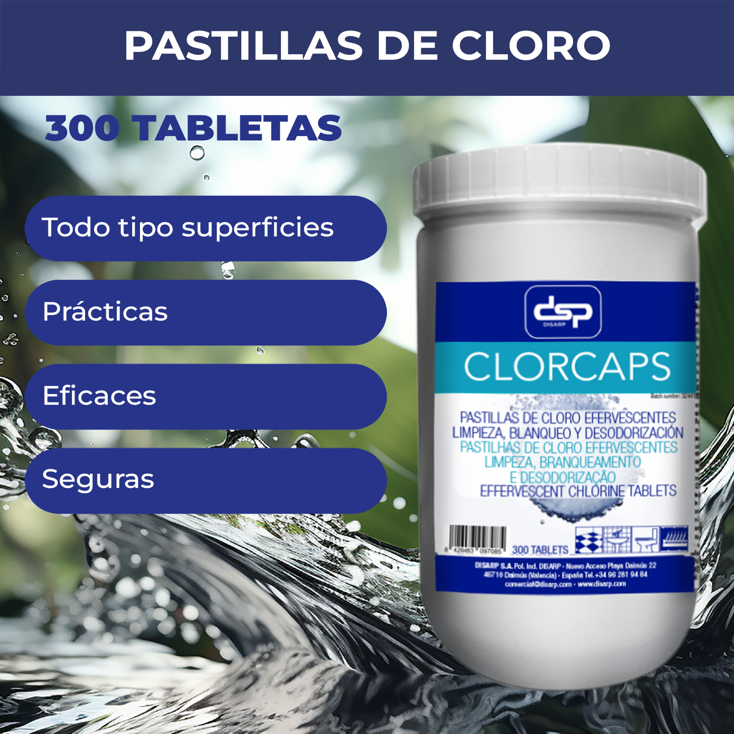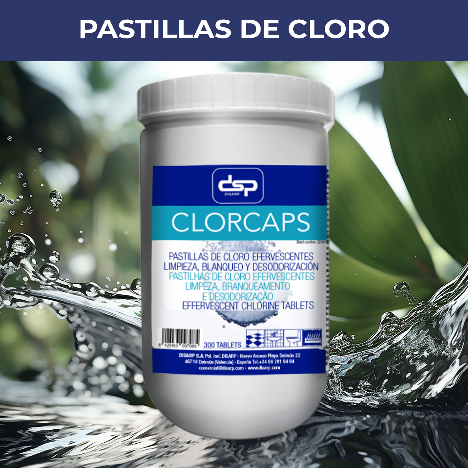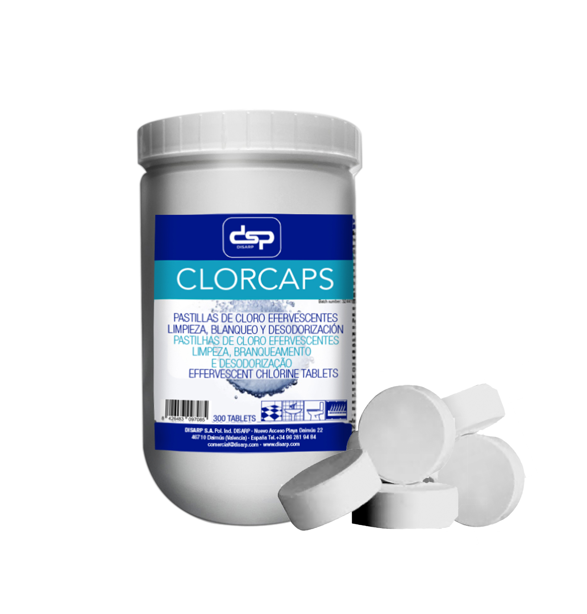 Las Pastillas de Lejía Efervescentes CLORCAPS ofrecen una solución práctica y segura para la limpieza y blanqueo diario. Al disolverse en agua, liberan cloro activo, proporcionando una acción eficaz de limpieza, blanqueo y eliminación de olores.